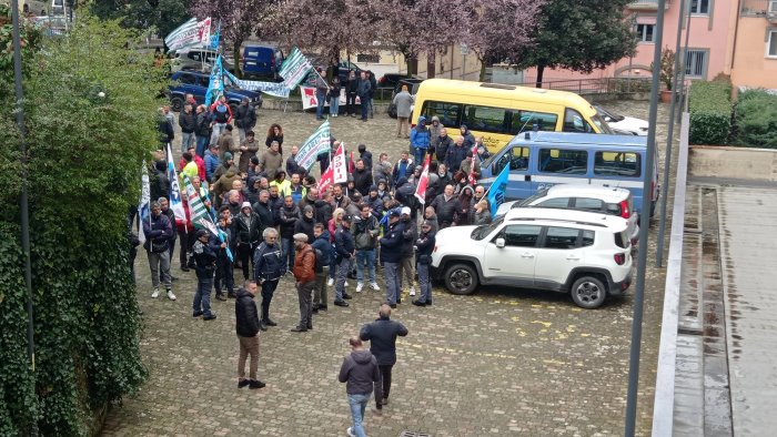 Continua la protesta degli operai di Irpiniambiente. Dopo il corteo di ieri mattina lungo corso Vittorio Emanuele, questa mattina hanno raggiunto la sede del Comune di Avellino. Non sono mancate tensioni e fibrillazioni tra i dipendenti dell'azienda che sta per essere divisa tra pubblico e privato. Gli operai chiedono al sindaco di Festa di fare un passo indietro e di non cedere ai privati la società.