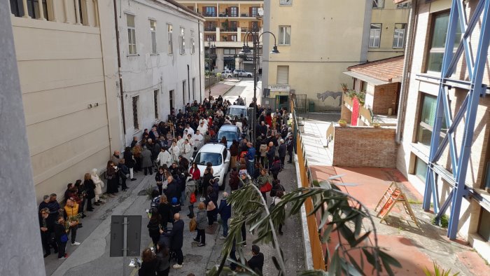 Benedizione delle palme all'aperto per la comunità religiosa della chiesa del Rosario ad Avellino.