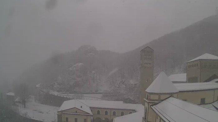 "All’Osservatorio continua a nevicare con moderata intensità. L’accumulo al suolo è di 1.3 cm.", comunicano dall'Osservatorio di Montevergine. Stesso scenario anche sul Vesuvio. Vesuvio innevato e temperature in calo. È l'effetto di una nuova perturbazione che in queste ore sta interessando le zone del Napoletano e che ha portato anche ad una grandinata che ha interessato le città alle pendici del vulcano.