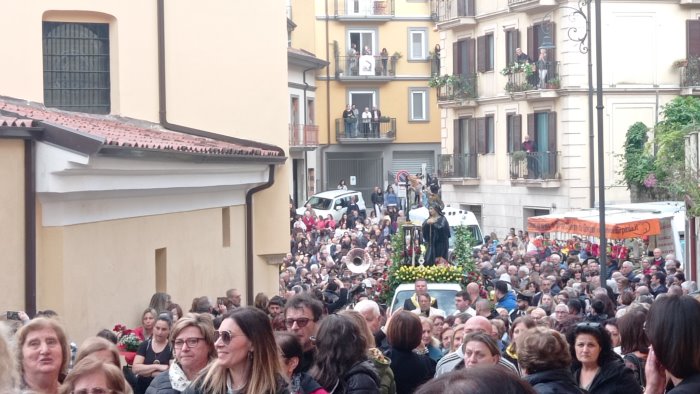 È stata sospesa lungo via Guarini la processione in onore di Santa Rita, causa pioggia. Commozione, fede, tradizione si sono vissute per le vie della città in onore della Santa delle cause impossibili, fino all'altezza di via Guarini dove, causa pioggia, la marcia sacra è stata interrotta. La commozione è stata comunque condivisa dai tanti devoti in marcia per le strade di Avellino, nonostante la pioggia sia iniziata a cadere sottile dopo l'uscita dalla chiesa di San Francesco Saverio della statua , particolarmente cara alla pietà popolare. In testa al corteo monsignor Antonio Dente, il sindaco Gianluca Festa, il vicesindaco Laura Nargi, gli assessori Geppino Giacobbe e Stefano Luongo. Con loro il comandante della Municipale Michele Arvonio e altri referenti di comune e forze dell'ordine. "La città abbraccia la sua Santa - dice il sindaco Gianluca Festa-. È sempre commovente vedere come fede e tradizione si tramutino in autentico senso di appartenenza di una comunità genuina e vera. Le nostre preghiere sono per chi soffre, gli ultimi, per gli alluvionati in Romagna, per le popolazioni vittime della guerra in Ucraina e delle altre guerre nel mondo". Tanti i fedeli che hanno rivolto un pensiero alle vittime dell'alluvione in questo giorno di straordinaria spiritualità . Sono numerosi i fedeli arrivati anche dalla provincia per l'evento di fede e amore per la Santa degli ultimi. Tanta delusione per le condizioni meteo che hanno interrotto il rito. Molti i fedeli e devoti che volevano aggiungersi al corteo in zona corso vittorio Emanuele e via De Conciliis rimasti delusi nell'attesa . Il corteo è stato interrotto e la Statua è stata coperta, e in questo momento viene riportata nella chiesa di San Francesco Saverio, percorrendo a ritroso il percorso. Molti fedeli si dicono dispiaciuti per non aver avuto comunicazione immediata dello stop al corteo. Traffico in tilt per le strade chiuse, come previsto dal piano traffico stilato ad hoc per l'evento.