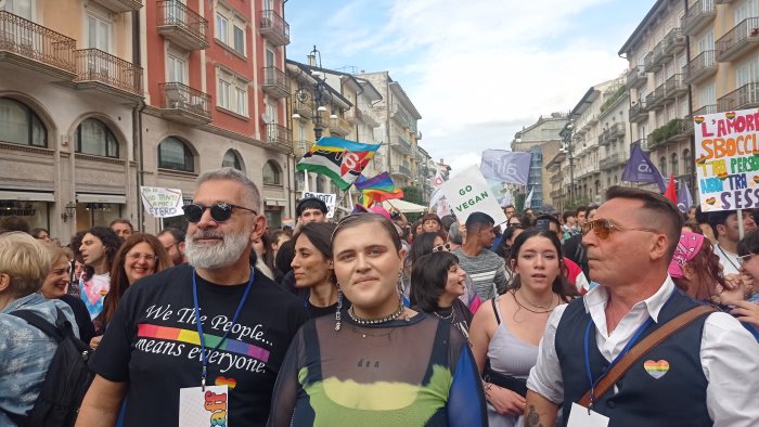 Irpinia pride, l'onda arcobaleno travolge Avellino. Un corteo festoso e colorato ha invaso la città e con forza, urla, cartelloni e la grande marcia dei diritti della comunità Lgbtq. A gran voce si è marciato per dire no alle discriminazioni e all'omotransfobia. Con il Patrocinio di Piazza del Popolo e grazie all'associazione "Apple pie: l’amore merita LGBTQI+”, il capoluogo ha ospitato l’Irpinia Pride 2023. Un’iniziativa dal forte valore anche simbolico, per sensibilizzare l’intera provincia rispetto al tema dirimente dei diritti civili, e il cui slogan, quest’anno, è già di per sé molto eloquente: “Mettiamoci la faccia”. In testa al corteo le due madrine dell'evento l'attrice Sara Esposito e la rapper irpina Big Mama. nel capoluogo irpino la festa dei diritti come in altre otto città italiane. Tappe cruciali della comunità Lgbtq i+ che rinsalda la lotta per i diritti.