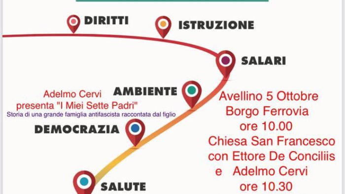 L'appuntamento ad Avellino è fissato per il prossimo 5 ottobre alle ore 10.00 nella chiesa San Francesco, con Ettore De Conciliis e Adelmo Cervi. Ore 10.30 oratorio Santa Chiara assemblea aperta, con associazioni, movimenti, cittadinanza e delegati.