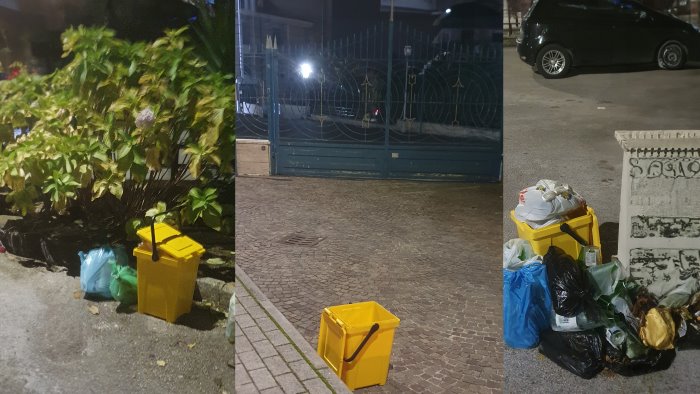 L'immagine mostra, a destra, l'accumulo davanti a un imprecisato portone perché da due settimane il solerte addetto non trova la strada.