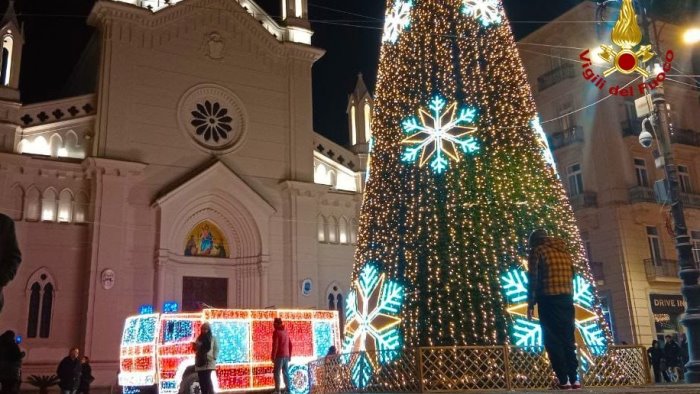 Vigili del fuoco di Avellino: che spettacolo al Corso con il camion illuminato