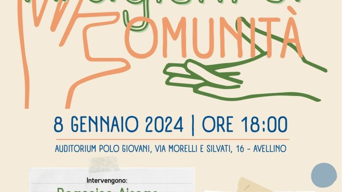 Riflettere su come stare insieme in una società dove la trama delle relazioni si affievolisce sempre di più. E' questo il tema al centro dell'incontro “Artigiani di comunità”, previsto per l'8 gennaio alle 18 presso l'auditorium del polo giovani di via Morelli e Silvati ad Avellino organizzato dall'azione cattolica italiana-Diocesi di Avellino.