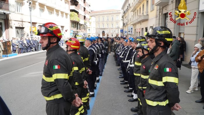 I Vigili del Fuoco di Avellino con in testa il comandante Mario Bellizzi, sono stati presenti nello schieramento di tutte le forze armate e con il personale dell’Associazione Nazionale del Corpo sezione di Avellino insieme a tutte le associazioni d’Arma.