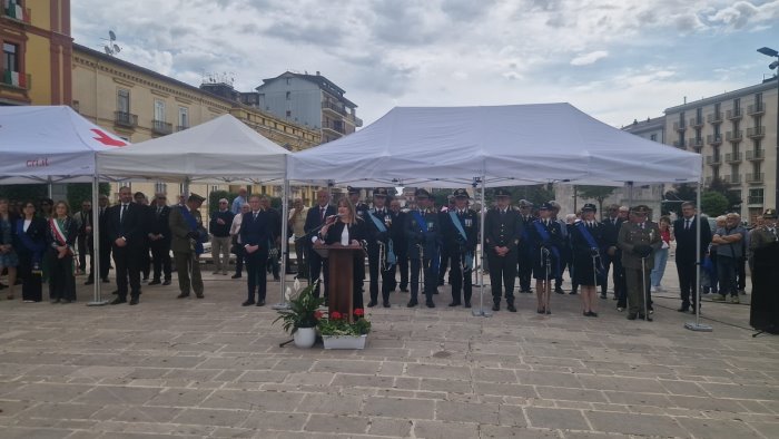 Per festeggiare il 78° Anniversario della proclamazione della Repubblica Italiana, il Prefetto di Avellino, Rossana Riflesso, ha inteso riunire tutta la comunità in piazza Libertà con una celebrazione preceduta dalla deposizione della corona d'alloro davanti al monumento ai Caduti e proseguita con lo schieramento del Reparto di formazione per gli onori, la cerimonia dell’Alzabandiera e la lettura del messaggio del Presidente della Repubblica, a cui si accompagneranno i contributi di alcuni studenti del Convitto Nazionale “P.Colletta” e del Conservatorio Domenico Cimarosa, oltre che con la vivace partecipazione dei bambini delle scuole primarie della Città.