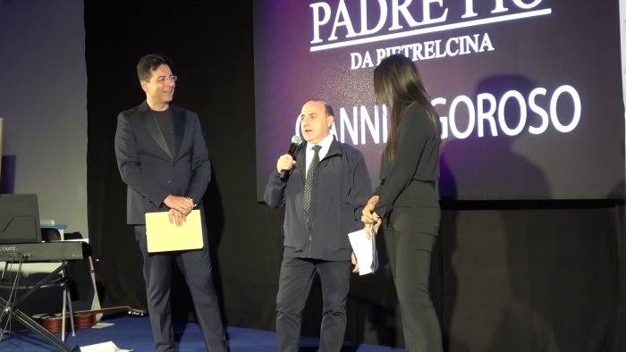 E' stato direttamente Gianni Mozzillo, ideatore del premio internazionale Padre Pio da Pietrelcina a consegnare un riconoscimento alla carriera al giornalista di Otto Channel Tv e Ottopagine Gianni Vigoroso di Ariano Irpino, che quest'anno ha tagliato il traguardo dei suoi 34 anni di attività da cronista. A scandire la motivazione Simona Rolandi giornalista Rai, conduttrice televisiva italiana volto noto della Domenica Sportiva insieme al collega Enzo Costanza.