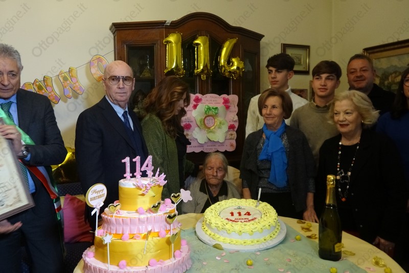 Una domenica di festa in via operai, intorno alla grande regina italiana che con i suoi 114 anni è la seconda donna più longeva della nazione. La prima, Claudia Baccarini che ha la sua stessa età, con un distacco di soli 40 giorni vive a Faenza dove ha già tagliato l'invidiabile traguardo il 13 ottobre scorso.