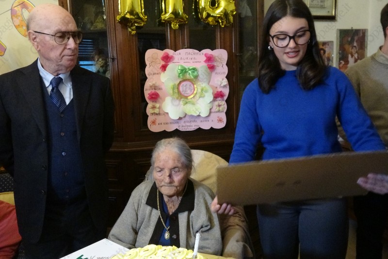 Un evento nazionale che nonna Laurina saluta così: "Sono contenta, grazie, grazie a tutti. Quanti anni sono? Ho perso il conto non mi ricordo più".