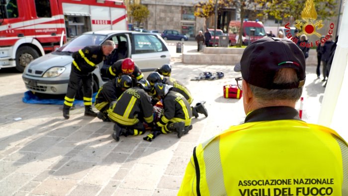 I vigili del fuoco di Avellino, insieme a una rappresentanza dell'associazione nazionale del corpo, hanno esposto i loro strumenti e messo in scena una simulazione di soccorso stradale.