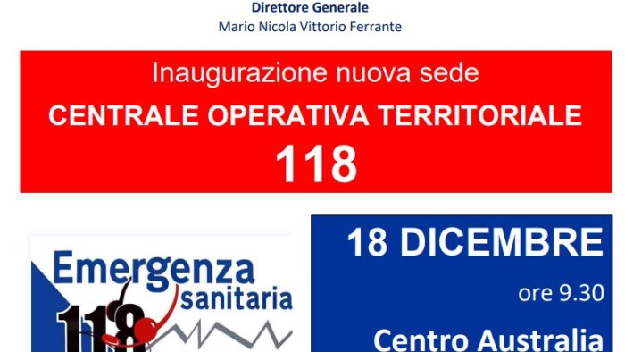 È operativa presso la nuova sede ASL Centro Australia di Avellino la Centrale Operativa Territoriale 118 dell’ASL di Avellino, che gestisce le chiamate di soccorso in arrivo da tutto il territorio della provincia di Avellino.