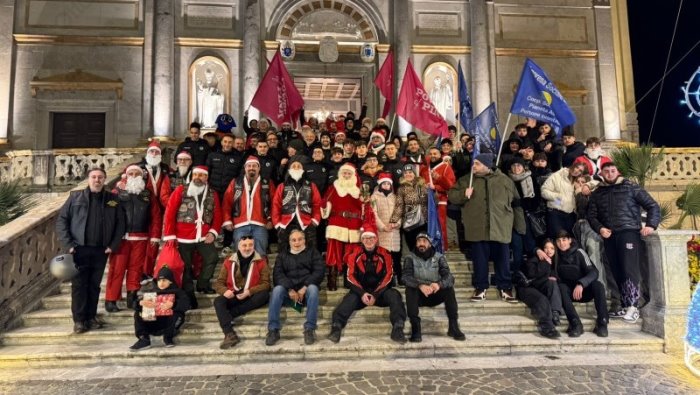 Babbo Natale è arrivato in moto ad Avellino anche quest'anno grazie al cuore buono degli Indian Bikers MC South Italy irpini che per il sedicesimo anno di fila hanno realizzato l'ormai attesissima manifestazione solidale. In città sono arrivati decine di motociclisti da tutta la provincia irpina, dal Sannio, come gli Indian Bikers MC South Italy Benevento, e non solo. I centauri Santa Claus, scortati dalla Polizia Municipale, hanno sfidato il freddo portando nel cuore del centro storico di Avellino doni ai bimbi nella casa canonica del Duomo del capoluogo. Tanti i punti raccolta che sono stati attivati nelle scorse settimane per la consegna dei regali. Grazie all'impegno di tanti sono stati riempiti due furgoni di regali per un evento che, anno dopo anno, si conferma riferimento irrinunciabile per la comunità irpina. In campo per la raccolta la concessionaria Blood Brothers di via Francesco Tedesco, Madai Cafè, Country Sport, Bar Cappuccini, Otto Tattoo, Il Tritone, Motor Up, Amos, Lupi Chapter.