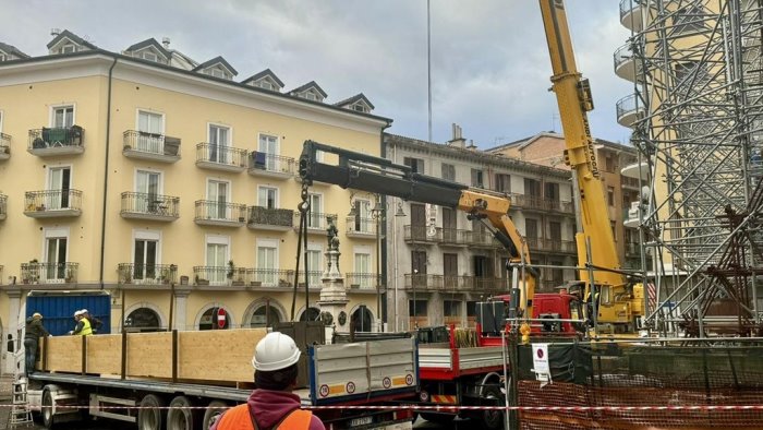 "Che grande emozione questa mattina. La struttura portante della nuova Dogana - ha anunciato la sindaca - è arrivata a piazza Amendola. Si tratta di due pilastri lignei che contribuiranno a reggere il nuovo scheletro a sostegno delle mura storiche perimetrali dell’antico palazzo dei grani.I lavori procedono spediti e il 2025 sarà l’anno decisivo per restituire alla città uno dei suoi simboli più amati e più attesi. Avanti così".