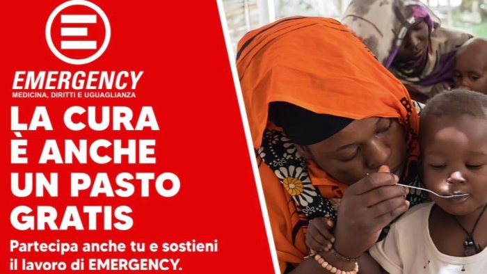 "Cure gratuite”, per Emergency, significa anche “pasti gratuiti”: “cura” infatti non è solo l’intervento chirurgico o la visita medica: è anche garantire pasti ai nostri pazienti, per assicurarci che una corretta dieta diventi parte del percorso di guarigione; ai loro familiari che li hanno accompagnati in quello che spesso è un viaggio lungo ed estenuante verso il nostro ospedale. Nelle mense dei nostri progetti garantiamo oltre 130.000 pasti al mese".