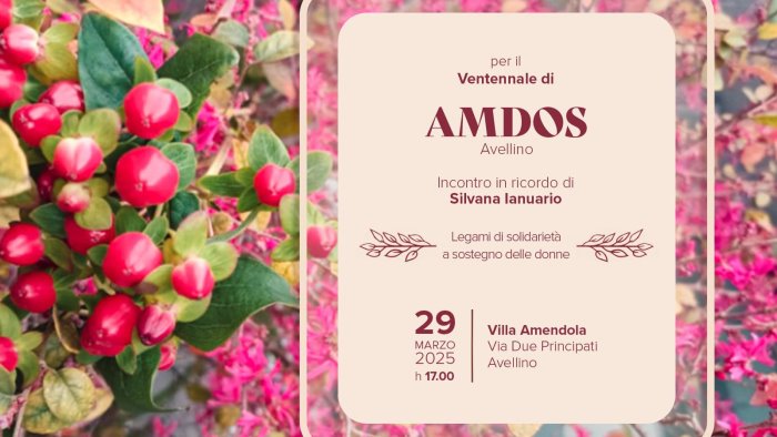 L’Associazione meridionale donne operate al seno, l’incontro del 29 marzo a Villa Amendola sarà dedicato a Silvana Ianuario, ex presidente dell’associazione, per ricordare il forte contributo alle attività di formazione, sensibilizzazione, assistenza post operatoria, creazione del punto d’ascolto, per le donne con la malattia, creando rete con le associazioni della provincia e rafforzando la presenza dell’Amdos sul territorio.
