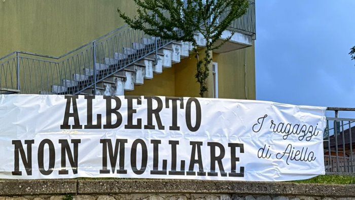 Davanti all'ospedale e in paese i suoi amici e tutta la comunità di Aiello del Sabato hanno affisso degli striscioni: “Alberto non mollare” .