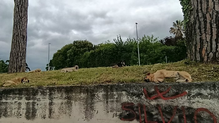 Almeno otto cani, di grossa taglia, vengono avvistati ormai da mesi in tutta la città di Avellino, dal centro alla periferia. Si muovono in branco, da tempo, occupando spesso rotonde e spazi verdi per riposarsi. Oggi sono stati avvistati sulla collina di contrada Archi, alla fine di via Ferrante, a pochi metri dall'ingresso di parco Gilia. Impossibile non notarli, in gruppo e stesi sulla spaziosa area verde. Qualche pedone ha deciso di cambiare strada, spaventandosi nell' incrociare il popoloso branco, che non sembra creare rischi o problemi per la comunità. Alcuni sono molto anziani e riescono a fare piccoli spostamenti. Alcuni animalisti del capoluogo seguono con affetto il branco, che da tempo staziona tra borgo Ferrovia e a Bonatti. " Sono innoqui - spiegano numerosi cittadini della zona-, siamo abituati a convivere. Questi cani preferiscono stare tra loro, senza creare rischi per nessuno. Sono ormai presenze abituali della zona e tante persone decidono anche di portargli qualche pasto. Sono molto riservati e preferiscono stare tra loro in branco".