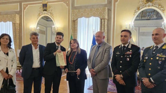 Restituisce un marsupio con 600 euro: premiato dal Prefetto il giovane Luca Cecere. Un gesto semplice, ma dal grande valore civico, è stato celebrato questa mattina al Palazzo di Governo di Avellino. Luca Cecere, giovane architetto irpino, ha ricevuto un riconoscimento dal Prefetto Rossana Riflesso per aver restituito al legittimo proprietario, lo scorso 9 maggio, un marsupio smarrito contenente 600 euro, documenti e carte personali.