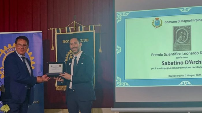 Così il senologo Sabatino D'Archi ha commentato la consegna del premio , in occasione quarta edizione del premio scientifico nazionale “Leonardo Di Capua” la cui cerimonia si è svolta alla presenza di scienziati provenienti da tutta Italia, medici e rappresentanti delle Istituzioni e delle Università di Salerno, Roma, Milano e Catanzaro. L’evento, organizzato dal Comune di Bagnoli e dalla European Cancer Prevention Organization presieduta dal medico oncologo e scienziato campano presso lo Ieo di Milano, Giovanni Corso, è stato ideato dal vicesindaco del Comune di Bagnoli Irpino, Rolisa Corso e dall’amministrazione comunale guidata dal sindaco Filippo Nigro con l’obiettivo di promuovere la cultura della prevenzione oncologica e della divulgazione scientifica sul territorio campano.