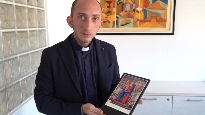 E' il dono di Don Mario Cucciniello, uno dei nuovi tre preti ordinati da monsignor Arturo Aiello, per la città di Avellino. Opera d'arte del Maestro Vallifuoco, è stata pensata e realizzata per donare un segno della prima messa officiata da don Mario, nel Santuario del Santissimo Rosario del Corso Vittorio Emanuele. "Una scelta quasi scontata – spiega don Mario -. Abbiamo scelto di calare la nostra Madonna nella città. Come si vede, le quinte perimetrali dell'icona, sono le bellezze del nostro capoluogo e non solo. Ci sono le mura longobarde e il Duomo, i palazzi del centro antico, in quelle tinte a noi così care come il rosso pompeiano e il giallo paglierino, ma anche il monastero di Montevergine. "Sub Tuum Presidium". Abbiamo voluto dare questo titolo per ricordare la grande forza e bellezza della protezione divina della Madonna". Don Mario porterà in dono questa immagine anche al commissario prefettizio, così da lasciarla nell'ufficio di chi guiderà, anche in futuro, il capoluogo nelle difficili sfide del tempo presente.