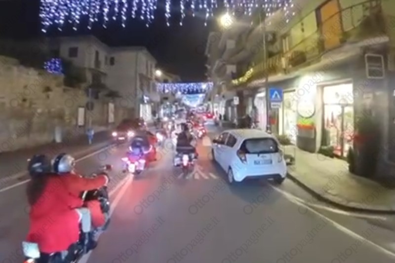 Barbe bianche, rombo e doni: i Babbo Natale in moto invadono Atripalda