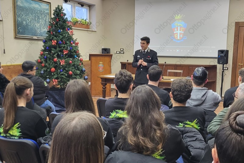 La prima parte dell’incontro ha avuto un taglio illustrativo e storico. Il capitano ha presentato le principali articolazioni e specialità dell’arma dei carabinieri, anche attraverso la pubblicazione di video, soffermandosi sull’evoluzione dell’Istituzione nel tempo e sul ruolo che essa svolge quotidianamente al servizio della collettività. Un racconto che ha permesso ai ragazzi di cogliere non solo la dimensione operativa, ma anche il valore storico e identitario dei carabinieri.