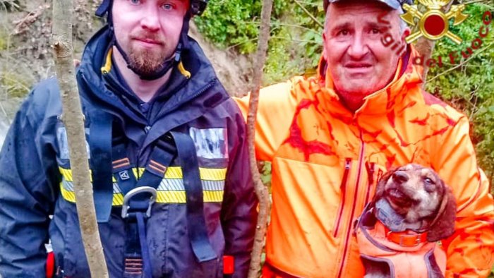 Cane da caccia finisce nel dirupo: salvato dai vigili del fuoco