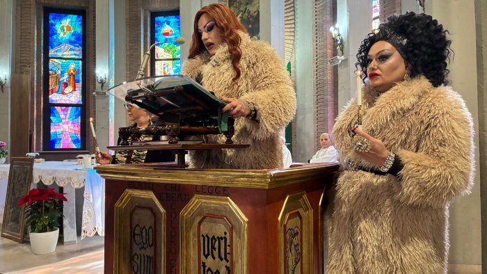Sono arrivati in pullman e in auto da tutta la Campania i componenti del mondo Lgbtqia+ per la messa di Don Vitaliano nel giorno della Candelora. Don Vitaliano Della Sala ha accolto i pellegrini dell’associazione transessuale Napoli, giunti per abbracciare spiritualmente i compagni vittime di abusi e violenze per aver affermato la propria identità. Il Santuario di Montevergine resta chiuso per la frana dello scorso 25 novembre e la Candelora in Irpinia è stata celebrata nella chiesa dell’Annunziata a Mercogliano.
