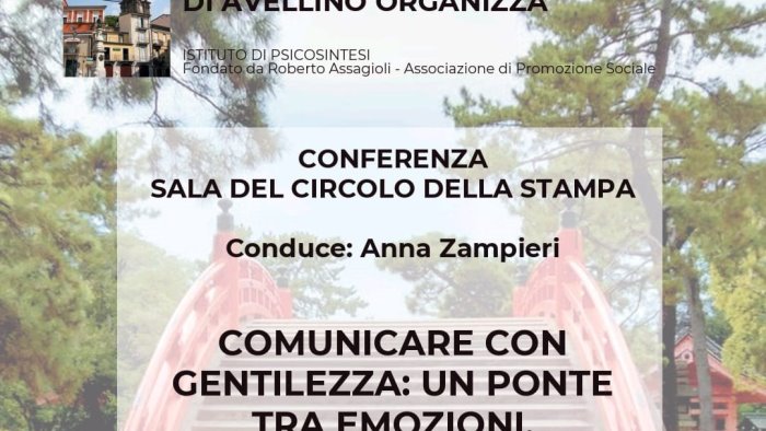 Il centro di Psicosintesi di Avellino, organizza, per venerdì 6 febbraio 2026, alle ore 18.00, presso il circolo della Stampa di Avellino, una conferenza stampa dal titolo "comunicare con gentilezza: un ponte tra emozioni, salute e relazioni".