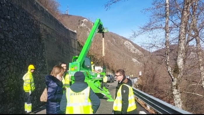 Sono partiti i lavori di messa in sicurezza della strada provinciale che conduce a Montevergine. Oltre 40pali garantiranno la sicurezza dei tornanti travolti dalla frana che portano al Santuario di Mamma Schiavona e si punta ad uscire dall'isolamento per Pasqua. Un intervento importante e decisivo per la sicurezza su una strada, che si è scoperta improvvisamente fragile. La frana travolse 4 tornanti e ha causato l'isolamento del Santuario ormai già oltre due mesi. “Dopo il lavoro di pulizia e rimozione dei detriti, dopo la frana dello scorso 25 novembre – dichiara il presidente della Provincia Rizieri Buonopane -. Siamo partiti con la realizzazioned el progetto che garantirà la piena sicurezza della strada che conduce all'Abbazia benedettina”. Stamane il sopralluogo e il presidente di Palazzo Caracciolo annuncia: puntiamo ad accelerare e riaprire presto la strada per garantire di nuovo l'arrivo al Santuario, per pellegrini, fedeli e turisti”.