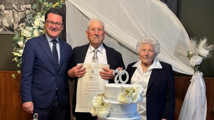 "Oggi pomeriggio (ieri per chi legge, ndr) ho avuto il piacere di portare i miei auguri a Davide e Concetta per il loro settantesimo anniversario di Matrimonio. Sono la prova concreta che l’amore per sempre esiste ! Auguri anche ai figli, ai nipoti e ai pronipoti. E’ stato commovente ritrovarmi in una sala traboccante d’amore, di gioia, di rispetto, di allegria, di sorrisi e di sguardi lucidi per l’emozione. È stato commovente assaporare il gusto dolce di ciò che vuol dire famiglia. Che Dio vi benedica. Ancora auguri". Ha commentato il sindaco Beniamino Palmieri.