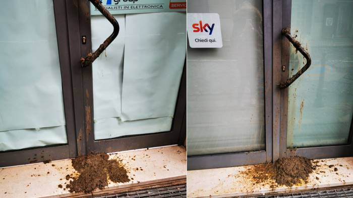 Un brutto risveglio per il titolare e i dipendenti di due negozi di Corso Umberto che si occupano di assistenza e vendita di prodotti e servizi nel settore Paytv e Internet: questa mattina hanno ritrovato le vetrine piene di letame.