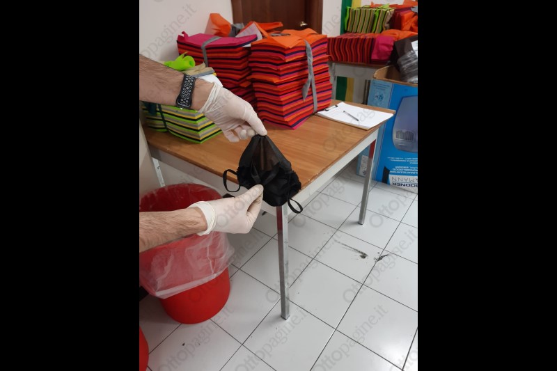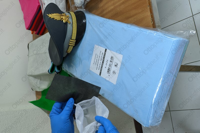 La fabbrica produceva mascherine artigianali assolutamente non idonee alla protezione dal contagio del virus Covid-19. Il titolare dell’attività si era “ingegnato” realizzando le mascherine con semplici elastici per abbigliamento e materiale del tipo “tessuto non tessuto” (TNT - poliestere), comunemente impiegato nella produzione di tovaglie usa e getta.