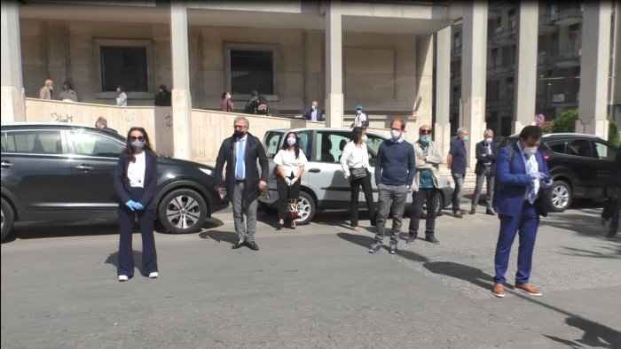 Si sono dati appuntamento nel piazzale De Marsico gli avvocati irpini del gruppo “Quelli del caffè nella zona rossa” nato su facebook durante la pandemia per chiedere al presidente del Tribunale a al procuratore della Repubblica l’immediata riapertura del tribunale e il ripristino delle normali attività giudiziarie dopo quasi 3 mesi. Tanti i professionisti che si sono alternati per far sentire la propria voce.
