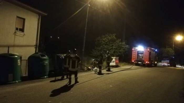 Quattro cassonetti sono andati in fiamme, due distrutti completamente e gli altri danneggiati. Se non fosse stato per il rapido intervento dei caschi rossi, sarebbero andati tutti in fumo.