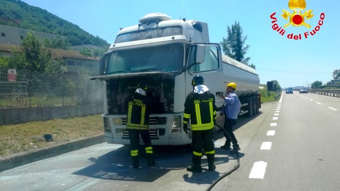 Subito dopo le ore 12'30 di oggi, i Vigili del Fuoco di Avellino sono intervenuti sulla SS7 Appia, al Km. 306,700, nel territorio di Manocalzati, poco prima dell'ingresso del casello autostradale di Avellino Est, per un principio d'incendio alla motrice di un'autocisterna che trasportava Gpl (gas di petrolio liquefatto). Il tempestivo intervento di due squadre ha permesso lo spegnimento delle fiamme evitando che le stesse si propagassero al pericoloso carico. L'autista proveniente da Napoli e diretto all'area di servizio Irpinia, tra i caselli di Avellino Est e Avellino Ovest, non ha subito nessuna conseguenza tranne un comprensibile spavento.
