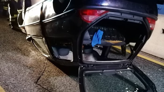 I Vigili del Fuoco di Avellino, subito dopo le 23, sono intervenuti sull'autostrada A16 Napoli - Canosa, al Km. 66,100 in direzione Napoli, nel territorio di Pietradefusi, per un incidente stradale che ha visto coinvolta un'auto che, dopo aver sbandato, si è ribaltata, ostruendo entrambe le carreggiate di marcia. Due le squadre intervenute, una dalla sede centrale di via Zigarelli e una dal distaccamento di Grottaminarda. Per fortuna le tre persone a bordo non sono rimaste incastrate e sono riuscite ad uscire da sole dall'abitacolo. Oltre allo spavento, non hanno subito grosse conseguenze.