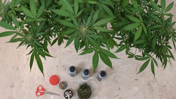 nel corso di una perquisizione dell'abitazione sono stati rinvenuti circa 25 grammi di hashish e marijuana, occultati nella sua camera da letto e, sul balcone, una pianta di canapa indiana alta circa un metro, recanti infiorescenze già idonee alla produzione di marijuana.