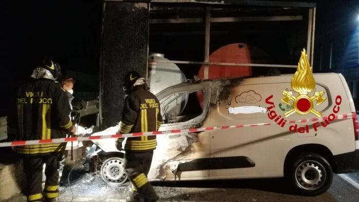 Furgone in fiamme davanti al Montedoro: si indaga