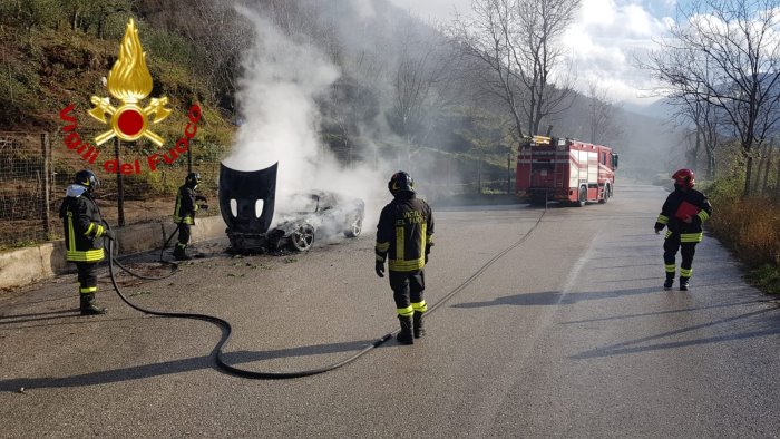 Auto in fiamme sulla provinciale Monteforte - Taurano