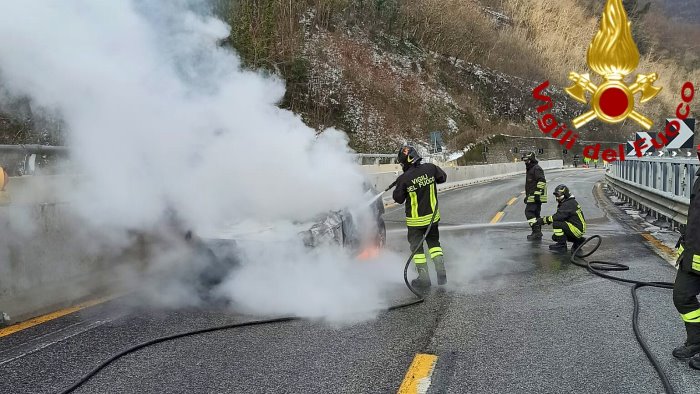 Durante la mattinata, i Vigili del Fuoco di Avellino sono intervenuti sull'autostrada A16 Napoli - Canosa, al Km. 32,450 in direzione Canosa, sul viadotto Acqualonga nel territorio del comune di Monteforte Irpino, per un incendio che ha interessato un'autovettura in transito. Le fiamme che hanno avvolto il veicolo sono state spente e messo in sicurezza l'area. L'uomo alla guida di origini avellinesi, non ha subito conseguenze tranne un comprensibile spavento.