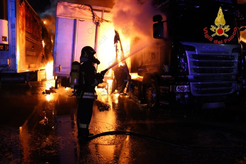 Alla fine sono dodici i pesanti automezzi rimasti coinvolti dalle fiamme di cui sei carichi. Lunghe e complesse le operazioni di spegnimento. La messa in sicurezza dell'intera area è ancora in corso.