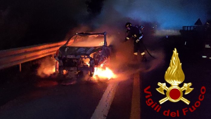 I Vigili del Fuoco di Avellino intorno alle ore 21 sono intervenuti sull'autostrada A16 Napoli - Canosa, nel territorio del comune di Monteforte Irpino, al Km 38,180 in direzione Canosa, per un incendio di un'autovettura in transito. Le fiamme che hanno avvolto il veicolo sono state spente e messo in sicurezza l'area. A bordo un uomo diretto a Monteforte, per lui solo un grosso spavento ma nessuna conseguenza.
