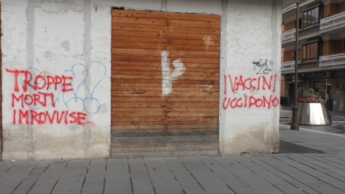 "Covid la grande bugia", "i vaccini uccidono" e "troppe morti improvvise". Queste le scritte no vax comparse sui muri di Corso Vittorio Emanuele. Un atto vandalico, che si aggiunge ai recenti episodi già avvenuti nella stessa zona. Solo pochi giorni fa erano apparse sul muro principale della centralissima chiesa del Rosario altre scritte. Numerose le segnalazioni di cittadini indignati per un gesto che colpisce al cuore la comunità avellinese.