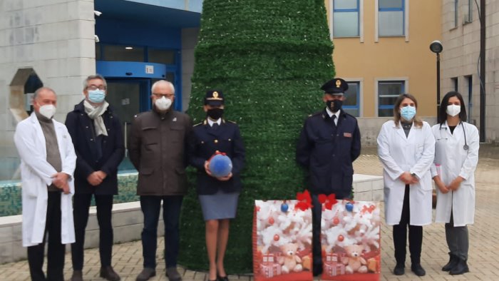 Nella mattinata odierna la Polizia di Stato Irpina ha fatto visita al Reparto di Pediatria dell’Azienda Ospedaliera Moscati di Avellino. L’attuale andamento della situazione epidemiologica non ha consentito, purtroppo, di incontrare i piccoli degenti, ma ciò non di meno i poliziotti hanno voluto testimoniare tutto l’affetto e la vicinanza nei confronti di chi soffre. Un gesto per allontanare la mente dalla loro situazione e donare un sorriso. L’incontro si è avuto nel piazzale antistante l’ingresso ospedaliero con il Dirigente Generale dell’Azienda Moscati, Dr. Renato Pizzuti, il Direttore del Reparto, Dr. Antonio Vitale e una rappresentanza del personale medico e infermieristico. Nella circostanza è stata appesa sull’albero di Natale allestito nella hall di ingresso una decorazione natalizia della Polizia di Stato, proprio a testimonianza dell’ormai consolidato slogan “Esserci Sempre”. La breve visita si è poi conclusa con la consegna di alcuni gadget, quali zainetti e cappellini istituzionali che saranno poi donati ai piccoli.