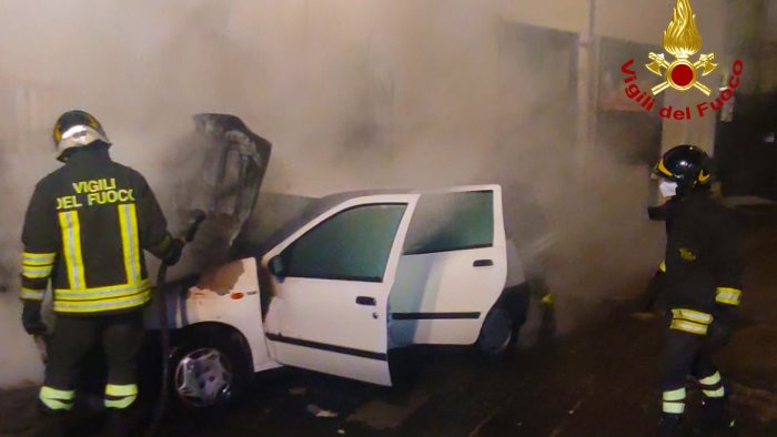 Le fiamme hanno distrutto una utilitaria parcheggiata lungo corso Umberto