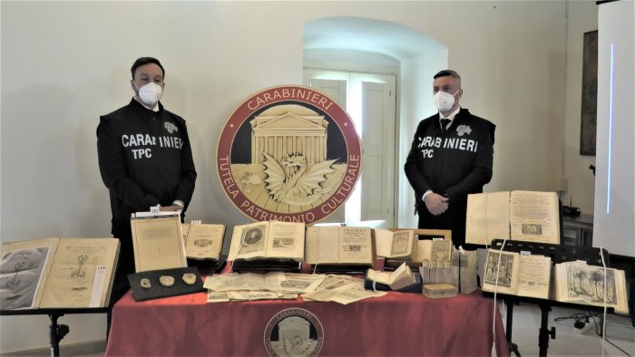 "In totale nel corso delle indagini abbiamo recuperato circa 260 volumi antichi provenienti dalla biblioteca Mancini di Ariano Irpino, oltre 21 reperti storico archivistici marmorei della diocesi, oltre 300 pagine smembrate da libri antichi, alcuni dei quali ancora presenti in biblioteca."