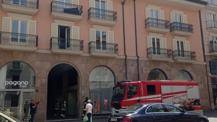 Le fiamme si sono sviluppate sul terrazzo del deposito di un noto store di abbigliamento, situato al lato interno di Corso Vittorio Emanuele. Ad andare a fuoco è stato l'impianto di refrigerazione dello store del Corso. Secondo i tecnici i gas dei condizionatori hanno sprigionato le fiamme.