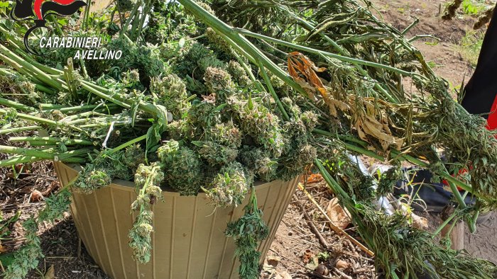 Proprio in questo contesto, a partire dalle prime ore del mattino, i militari del Nucleo Operativo e Radiomobile della Compagnia Carabinieri di Mirabella Eclano e quelli della Stazione di Montemiletto, con il prezioso e risolutivo ausilio di personale dello Squadrone Eliportato Cacciatori “Puglia”, del 7° Nucleo Elicotteri Carabinieri di Pontecagnano (SA) e del Nucleo Cinofili di Sarno (SA), hanno eseguito una mirata operazione antidroga, che ha portato alla scoperta di un’imponente coltivazione di piante di canapa indiana nell’agro di Montemiletto e, al contempo, all’arresto di due pregiudicati campani che stavano già adoperandosi per la raccolta e l’essicazione delle infiorescenze.